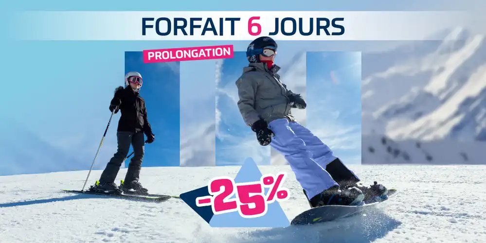 Réservez votre forfait de ski 6 jours Val d'Arly en avance et bénéficiez de -25% ! Offre valable jusqu'au 20 décembre 2025.